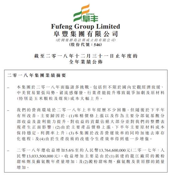 阜豐集團年度凈利創(chuàng)新高 增33.5%至18.45億元