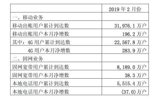 中國聯(lián)通2月運營數(shù)據(jù):4G用戶凈增283.9萬戶 累計達2.26億