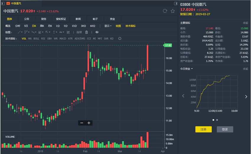 中金:升重汽(03808)目標(biāo)價(jià)至18.5元 評級“推薦”