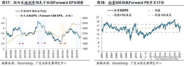 但短期的走勢(shì)可能更為復(fù)雜。我們認(rèn)為在19Q1經(jīng)歷一輪快速的估值修復(fù)后,可能面臨的波動(dòng)性將有所增加:1)未來(lái)1個(gè)月內(nèi),港股EPS一致預(yù)期仍有可能下修,作為經(jīng)驗(yàn)指標(biāo)的國(guó)內(nèi)長(zhǎng)端利率已經(jīng)先于EPS反映;2)市場(chǎng)計(jì)入了較為樂(lè)觀的貿(mào)易談判預(yù)期,但在最終落地之前,仍需關(guān)注潛在的變數(shù);3)美股Forward PE上漲至17倍,已臨近均值+1標(biāo)準(zhǔn)差水平,而聯(lián)儲(chǔ)“一鴿再鴿”的利多落地并被Price in后,對(duì)于疲弱基本面的擔(dān)憂會(huì)使得VIX中樞上移。