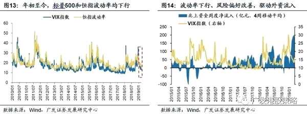 全球利率下行、風(fēng)險(xiǎn)偏好上行,驅(qū)動(dòng)“西水東流”,新興市場(chǎng)和港股流動(dòng)性環(huán)境仍將改善。我們?cè)诖饲皩n}報(bào)告總結(jié)了外資增配AH市場(chǎng)的核心邏輯,包括“全球利率與風(fēng)險(xiǎn)偏好共振”、“便宜是硬道理”、 “布局資本開放紅利”等(參考報(bào)告《外資“西水東流”,增配A還是H?——“跨市場(chǎng)比較”系列之二》,2019-2-27),其中利率下行、波動(dòng)率下行和風(fēng)險(xiǎn)偏好上行對(duì)港股流動(dòng)性驅(qū)動(dòng)明顯。而3月份FOMC再一次確認(rèn)了美債收益率下行的趨勢(shì),能夠繼續(xù)支撐港股市場(chǎng)流動(dòng)性改善,使得當(dāng)前估值修復(fù)的趨勢(shì)不至于被逆轉(zhuǎn)。