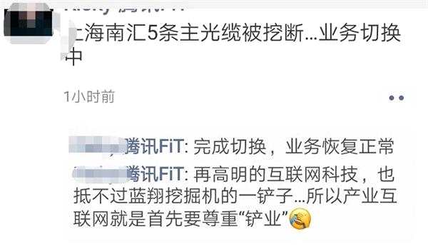 有騰訊員工在朋友圈開玩笑說,再高明的互聯(lián)網(wǎng)科技,也抵不過藍(lán)翔挖掘機(jī)的一鏟子。