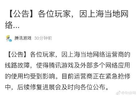 另外,騰訊旗下《魂斗羅》《QQ飛車》《絕地求生:刺激戰(zhàn)場》等游戲受到影響,出現(xiàn)無法登陸,部分功能體驗(yàn)異常等情況。
