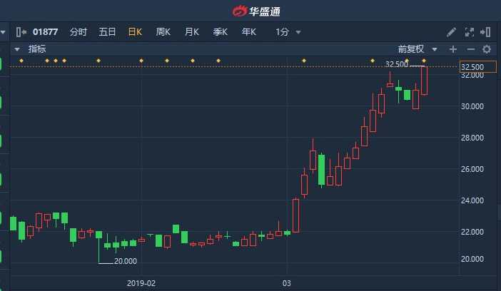獲悉,君實(shí)生物-B(01877)早盤逆市揚(yáng)升,盤中再刷上實(shí)新高32.5港元,截至11時(shí)15分,漲32.4港元,成交額達(dá)468萬港元。