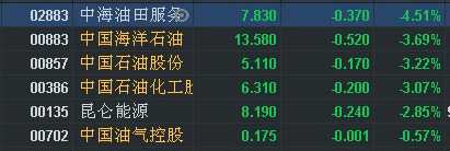 ︱石油股全線下挫 中海油田服務(wù)(02883)跌超4%