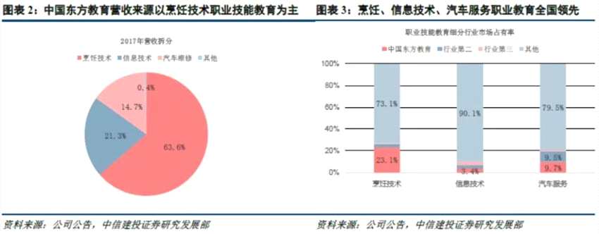 烹飪技術(shù)職業(yè)技能教育貢獻了東方教育的主要收入,IT、汽車維修技能教育次之。