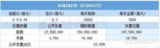 配售結(jié)果 DOMINATE GP(08537)一手中簽率14% 最終定價0.3港元