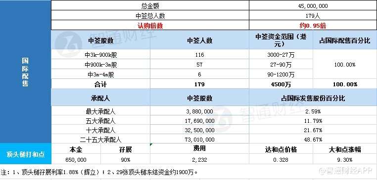 國際配售申購人數(shù)約179人,超購倍數(shù)0.95倍。