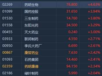 獲悉,調(diào)整多時的醫(yī)藥股今日集體回暖,截至發(fā)稿,藥明生物(02269)漲4.63%,國藥控股(01099)、三生制藥(01530)、東陽光藥(01558)漲超3%,康哲藥業(yè)(00867)、石藥集團(tuán)(01093)、藥明康德(02359)漲超2%。