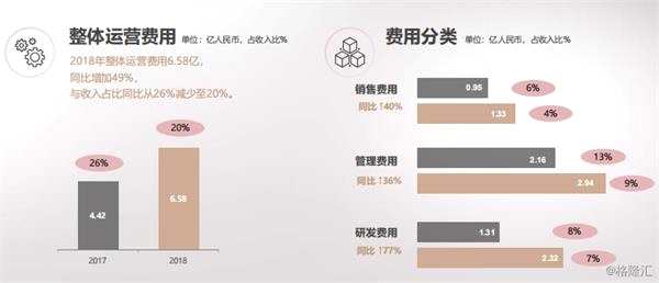 在收入大幅增長同時,整體運營費用6.58億元,占總收入比重20%,相比2017年的26%有所下滑,運營效率提升顯著。