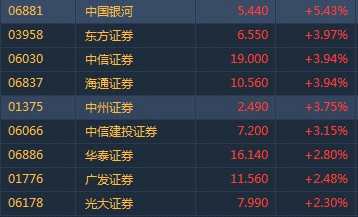 A股券商板塊午后快速拉升 中國銀河(06881)領(lǐng)漲中資券商股