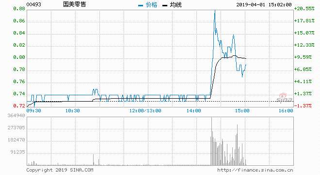 4月1日,黃光裕出獄鬧烏龍,國美系股票沖高回落,其中,港股國美零售、國美金融漲幅均收窄至不足10%,中關(guān)村(000931)打開漲停板。