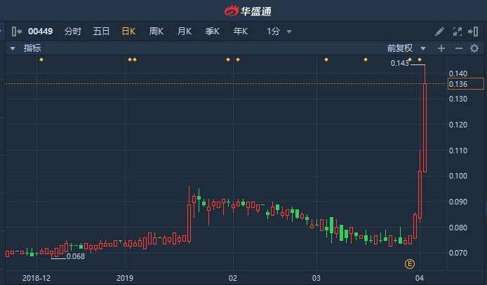 獲悉,志高控股(00449)延續(xù)強(qiáng)勢(shì),早盤(pán)平開(kāi)后直線(xiàn)拉升,升幅一度擴(kuò)大至40%高見(jiàn)0.144港元?jiǎng)?chuàng)近一年新高,三日累漲近85%。