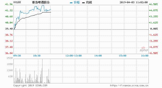 青島啤酒(00168.HK)現(xiàn)漲4.57%,報41.2港元,創(chuàng)2018年8月初以來新高。