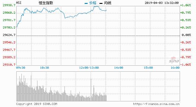 隔晚(2日)美股三大指數(shù)個別發(fā)展,道指跌79點報26179,標指升不足1點報2867,納指漲19點報7848.不過,在亞洲股市走勢向好下,港股今早高開160點報29785,及后財新公布中國3月份服務業(yè)PMI為54.4,大勝預期52.2,港股受消息刺激升幅一度擴大,最多攀升304點報29929,突破29900關口,最終午收29879點,升254點或0.86%,主板成交630.5億元.國企指數(shù)報11627,升81點或0.7%。