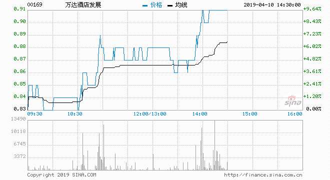 4月10日消息,萬達(dá)酒店發(fā)展股價(jià)大漲10.84%,報(bào)0.92港元。此前公布去年業(yè)績扭虧為盈至7.68億港元。