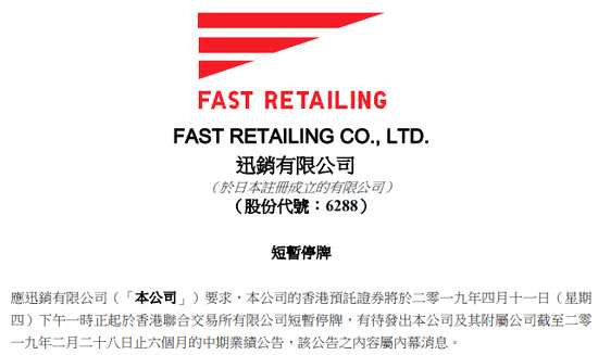 迅銷午后停牌 以待刊發(fā)中期業(yè)績(jī)