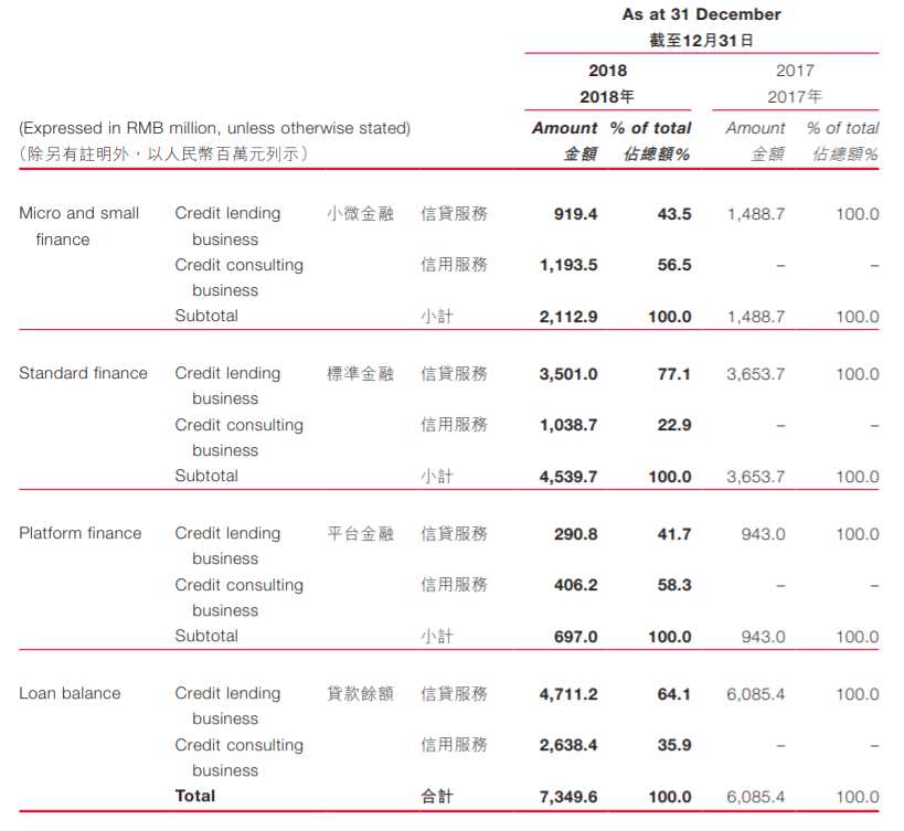財(cái)報(bào)數(shù)據(jù)顯示,截至2018年12月31日,小微信貸業(yè)務(wù)分部管理的資產(chǎn)規(guī)模余額為人民幣73.49億元,同比增加20.8%,主要來源于信用服務(wù)引起的增長。稅前凈利潤2.42億元,同比減少6.6%,主要是因?yàn)樾刨J服務(wù)資產(chǎn)組合變化引起2018年提取的資產(chǎn)減值損失的增加額大于凈利息及手續(xù)費(fèi)的增加額。