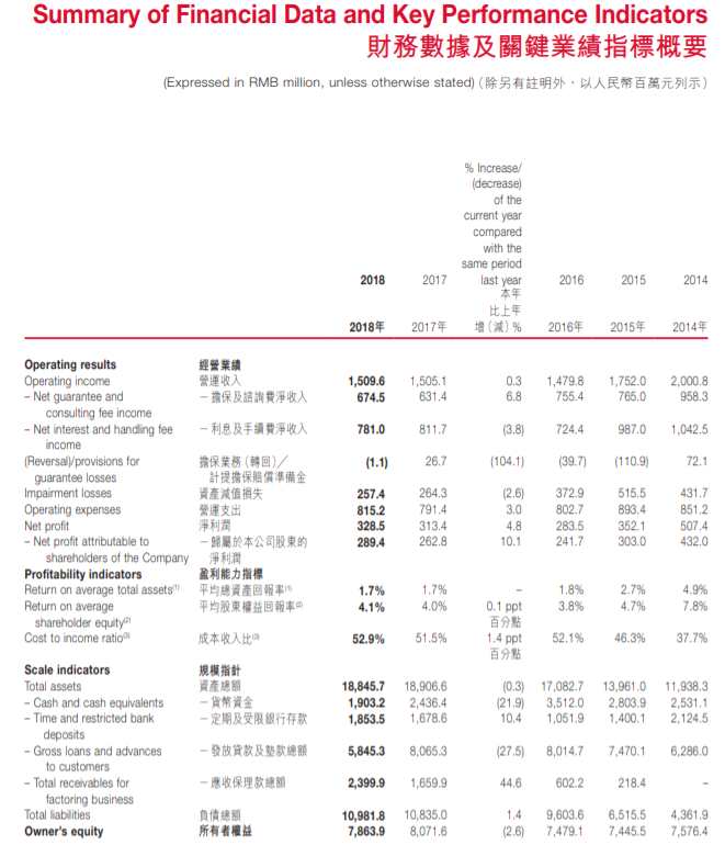 摘要: 4月12日,瀚華金控(HK:03903)發(fā)布2018年財(cái)報(bào)。數(shù)據(jù)顯示,瀚華金控營運(yùn)收入15.10億元,同比增加0.3%;凈利潤3.29億元,同比增加4.8%。年報(bào)顯示,瀚華金控旗下?lián)碛腥谫Y擔(dān)保、小額信