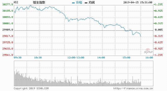 摘要: 4月15日消息,港股恒指漲幅收窄至下跌,截止發(fā)稿,跌0.16%,報29861.22點,失守3萬點。蘋果概念股、石油股、航空股跌幅居前。舜宇光學跌2.51%領跌藍籌。