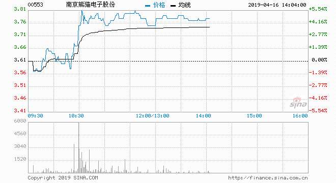 【南京熊貓(600775)、股吧】電子(00553)H股現(xiàn)飆升4.71%,報3.78元,盤中高見3.83元;成交約465萬股,涉資1739萬元。