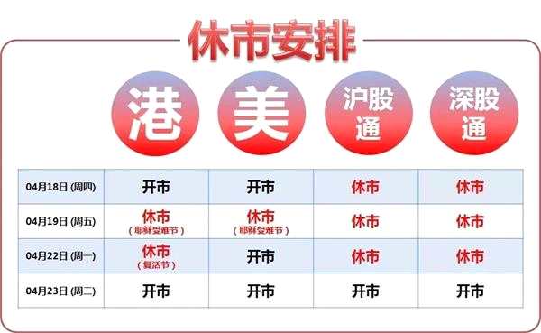 耶穌受難節(jié)及復活節(jié)即將到來,請您留意節(jié)日期間之港股、美股、滬股通及深股通的休市安排: