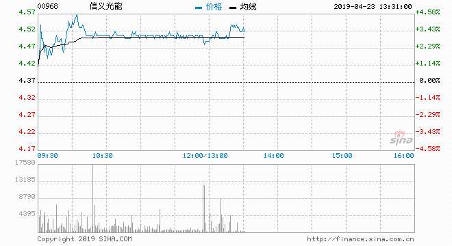 信義光能(00968)現(xiàn)漲2.97%,報4.5元,盤中高見4.58元,創(chuàng)歷史新高,暫三連升累漲近一成;成交約2534萬股,涉資1.14億元。