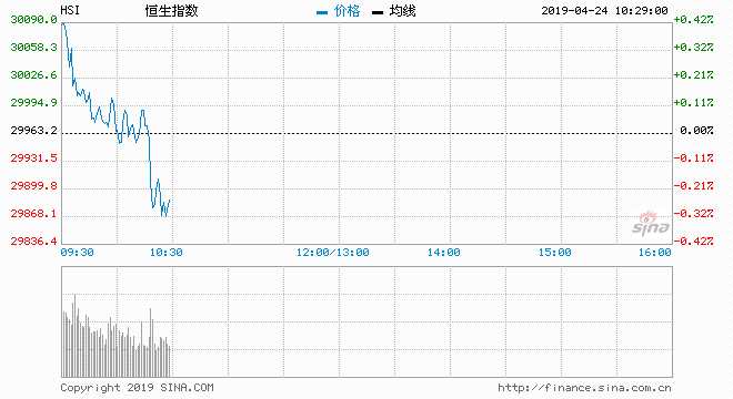 4月24日消息,周二歐美股市普漲,納指和標普500指數(shù)創(chuàng)收盤紀錄新高;內地市場資金面延續(xù)前一日收緊的態(tài)勢,緊張程度加重,隔夜利率大漲。今日早盤,港股高開低走,港股恒生指數(shù)跌0.3%,報29873點;國企指數(shù)跌0.48%,報11675點;紅籌指數(shù)漲0.08%,報4644點。