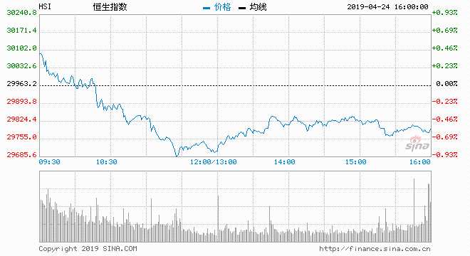 港股今早跟隨外圍向上,高開(kāi)148點(diǎn),報(bào)30112,惟已是全日最高位.隨后在A股跌幅擴(kuò)大及中資金融股拖累下掉頭向下,一度低見(jiàn)29682,瀉281點(diǎn),雖然之后跌勢(shì)回順至跌150點(diǎn)左右,但仍難以收復(fù)失地,最終全日挫157點(diǎn),報(bào)29805點(diǎn),十天線及三萬(wàn)關(guān)再得而復(fù)失,主板成交985.17億元,較上日減少逾8%。