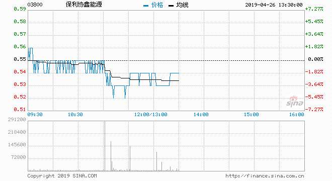 保利協(xié)鑫能源(03800)現(xiàn)價(jià)下跌3.64%,報(bào)0.53元,暫連跌三日兼三連陰,累挫8.62%;成交約1.05億股,涉資5617萬元,主動(dòng)沽盤70%。