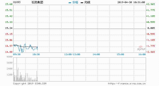 石藥集團現隨市跌逾2% 失守15元關口