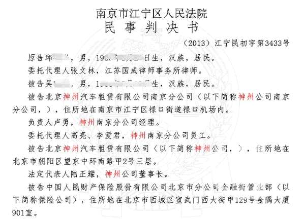 因?yàn)闆](méi)有列出證據(jù),法院一審認(rèn)定,“神州租車”沒(méi)有責(zé)任,保險(xiǎn)公司承擔(dān)了所有賠償金額。