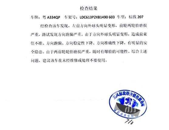 陳先生在汽車專業(yè)檢測(cè)中心自費(fèi)檢測(cè)的結(jié)果。