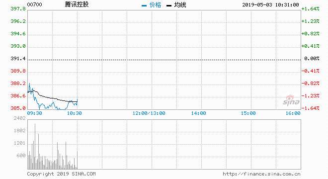 騰訊(00700)現(xiàn)價下跌1.58%,報385.2元,失守20天線(386.74元);成交約242萬股,涉資9.37億元。