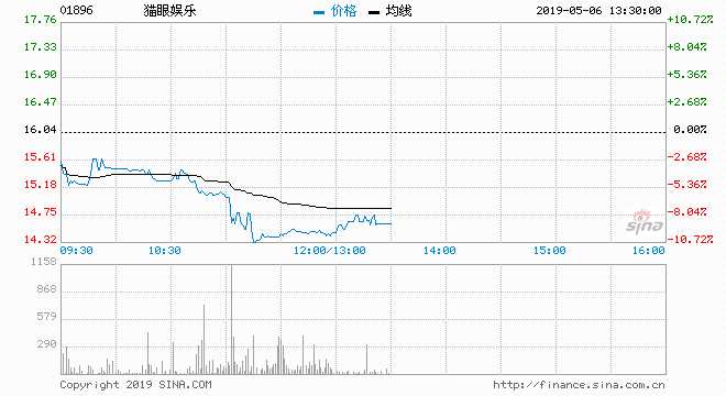 貓眼娛樂(lè)(01896) 14.66元 跌8.60%