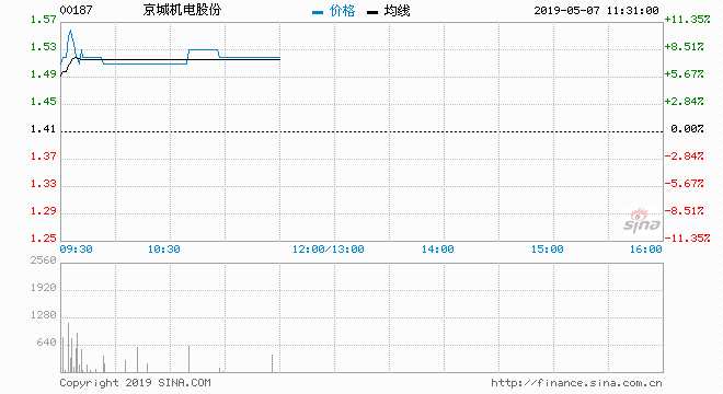 京城機電(00187)H股現(xiàn)大漲7.8%,報1.52元,盤中高見1.56元,;成交約105萬股,涉資160萬元,主動買盤62%。