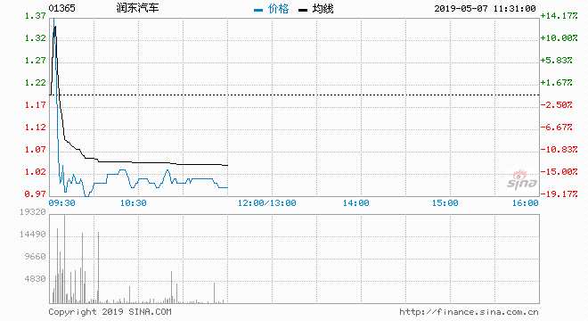 5月7日消息,潤東汽車早盤大幅震蕩超40%,股價(jià)現(xiàn)急漲急跌走勢,現(xiàn)跌15.83%,報(bào)1.01港元,最新市值9.559億港元。