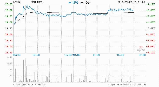 中國燃氣(00384)現(xiàn)價升3.51%,報25.1元,暫升幅最大國指成份股;成交約248萬股,涉資6191萬元.股份盤中高見25.25元,曾突破10天線(25.095)。