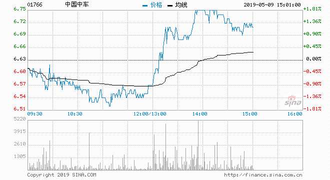 中國中車(01766) 6.73元 升1.51%