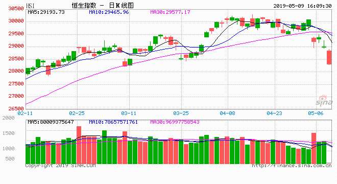 摘要: 5月9日消息,美股周三收盤漲跌不一,道指微幅收高。投資者正權(quán)衡財(cái)報(bào)、經(jīng)濟(jì)數(shù)據(jù)及貨幣政策等不確定性因素。今日早盤,港股恒生指數(shù)低開0.56%,隨后跌幅擴(kuò)大。截至午間收盤,恒指跌2.39%,報(bào)28311.