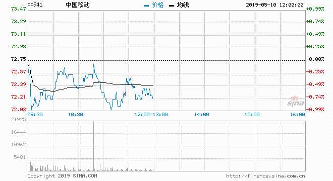 中國移動(00941) 72.10元 跌0.89%