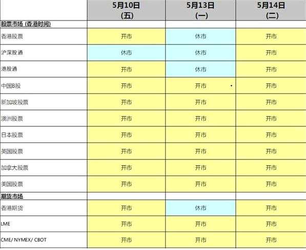 交易提示:佛誕假期港股周一休市 5月14日恢復(fù)交易
