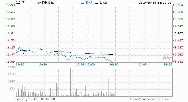 華虹半導(dǎo)體 (01347) 15.84元 跌5.77%