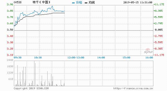 味千 (00538) 3.93元 升9.78%