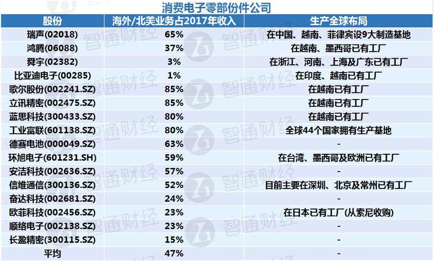 摘要: 中金近日發(fā)表報告,列出內(nèi)地及香港上市的主要手機產(chǎn)業(yè)鏈公司收入構(gòu)成:該行還列出部分市場上市的電子企業(yè)全球布局: