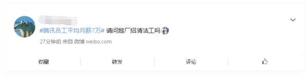 財大氣粗!騰訊員工平均月薪7萬 網(wǎng)友評論:請問還招清潔工嗎?