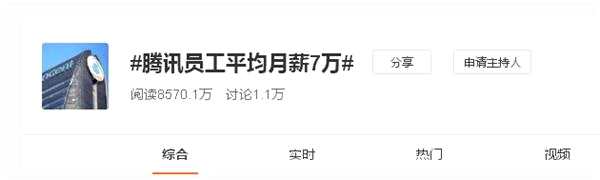 “騰訊員工月薪7萬”話題引發(fā)網(wǎng)友熱議。
