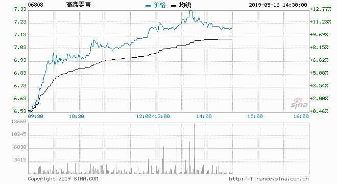 阿里系股份高鑫零售(06808)受惠阿里巴巴新零售布局及季績(jī)?cè)旌?,現(xiàn)價(jià)上升10.92%,報(bào)價(jià)7.21港元。