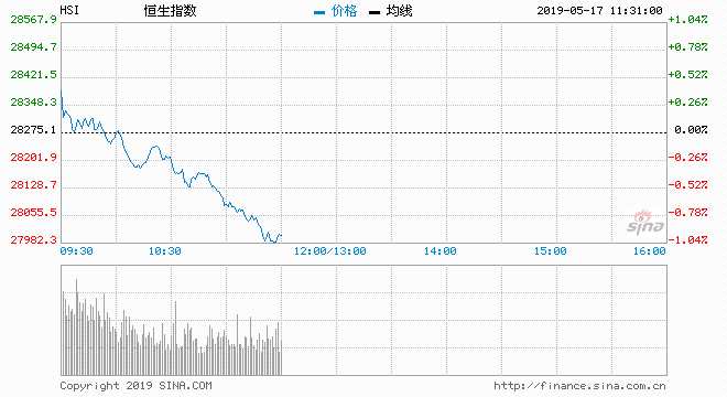 摘要: 5月16日消息,今日早盤(pán),恒指高開(kāi)低走,三大股指相繼走跌。截至發(fā)稿,港股恒生指數(shù)跌1.01%,報(bào)27988點(diǎn),失守28000點(diǎn),最低見(jiàn)27991點(diǎn);國(guó)企指數(shù)跌0.84%,報(bào)10718點(diǎn);紅籌指數(shù)跌0.