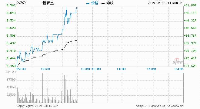 港股稀土概念暴漲 中國稀土漲幅近50%星宇控股漲18%